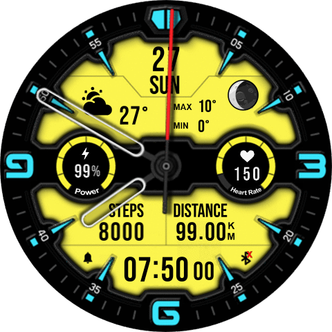 - Add weather, steps, distance, heart rate, battery, date, seconds, calendar, moon, oxygen blood,