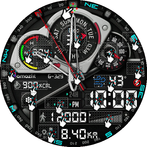 - If compass on the watchface not active please click on 12 o'clock  for calibrate compass.