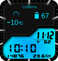 Добавил шаги, день недели, цифру заряда батареи, добавил минус к температура и сместил значок bluetooth выше.