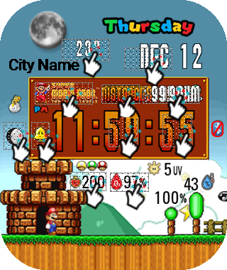 - Add weather, steps, distance, calories, heart rate, battery, date, moon, sports list, calendar,
