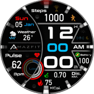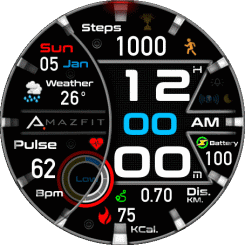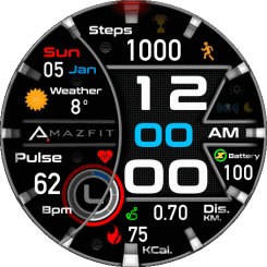 -  Have  digital, weather, steps, calories, distance, heartrate, battery, date, seconds.