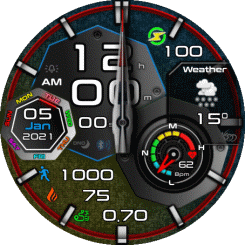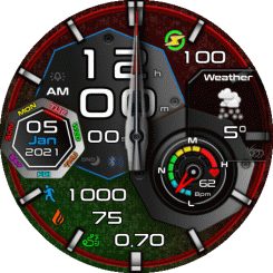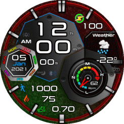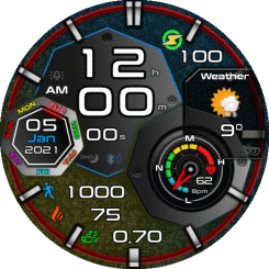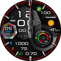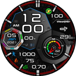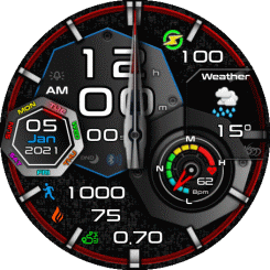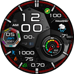 - Have Analog ,digital, weather, steps, calories, distance, heartrate, battery, date, seconds.