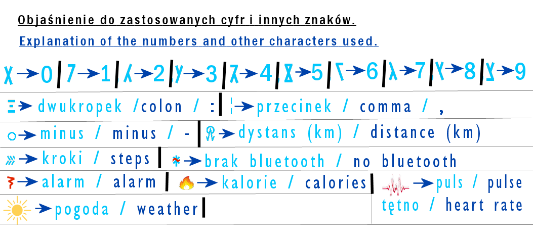 Aby ułatwić przyswojenie specjalnych, predatorowych cyfr, znaków i symboli zamieściłem w pliku graficznym ich objaśnienie.