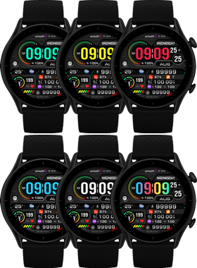 (1. Alarm , 2. sunrise/sunset , 3. temperature, 4. countdown , 5.PAI , 6. Steps , 7. Pulse , 8. SP02 , 9.Stopwatch)