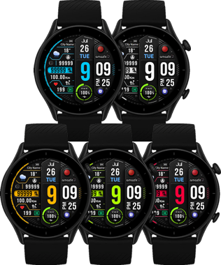 (1. Alarm ,  2. sunrise/sunset , 3. temperature, 4. countdown ,  5.PAI ,  6. Steps ,  7. Pulse , 8. SP02 , 9.Stopwatch)