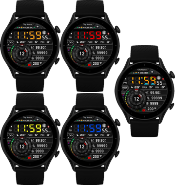 - Add weather, steps, distance, calories, heart rate, battery, date, seconds, City-name,