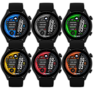(1. Alarm , 2. sunrise/sunset , 3. temperature, 4. countdown , 5.PAI , 6. Steps , 7. Pulse , 8. SP02 , 9.Stopwatch 10.calendar)