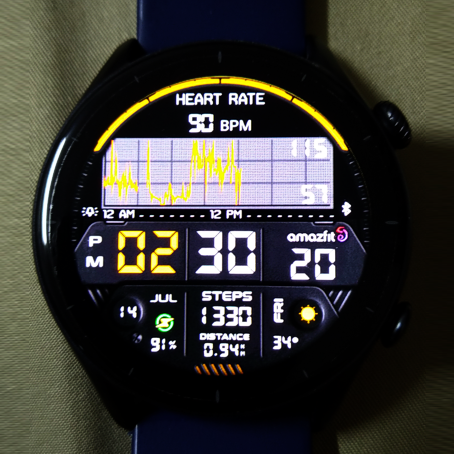 - Add weather, steps, distance, calories, heart rate, battery, date, seconds, Graph_Heart,