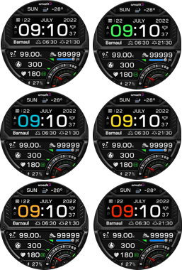 - Add weather, steps, distance, calories, heart rate, battery, date, seconds, City-name,