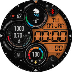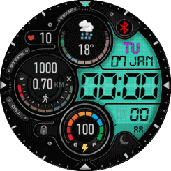 Hi, would someone please create this watchface face from wear os for Gtr4? If possible with the option of having translucent pointers to be able to see the info under them. If possible the main circle contains digital time. If possible to ...