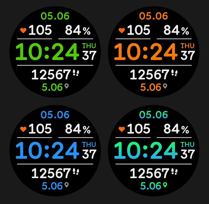 Dear friends, all my watch faces are created exclusively for myself — I just share them with you. I don’t have free time to make changes such as altering colors, backgrounds, languages, metrics, etc. Please don’t message me about that.