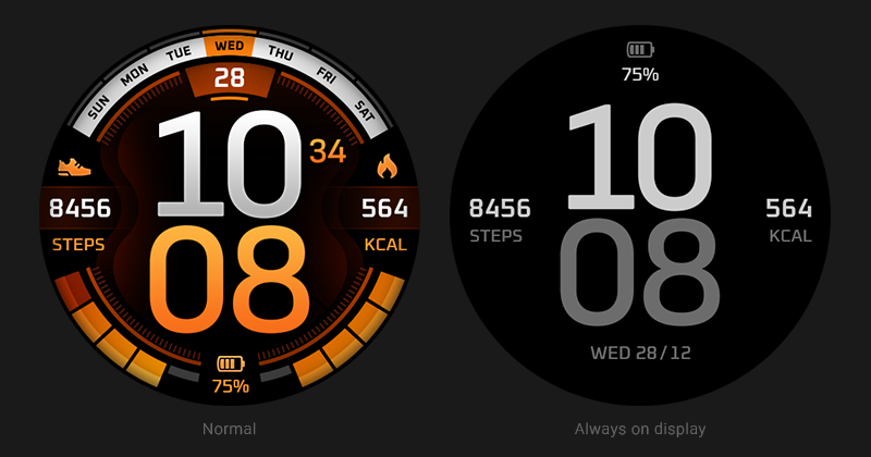 In the preview version, all metrics, time, etc. do not change — they show a single fixed value. This allows you to visually evaluate whether the watch face suits you or not.