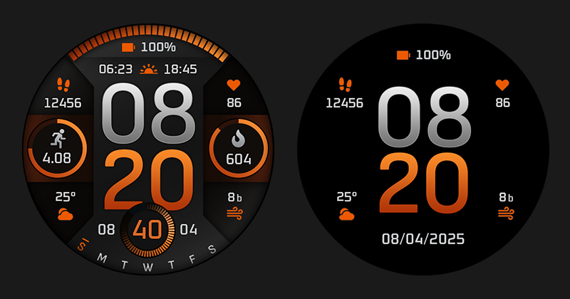 In the preview version, all metrics, time, etc. do not change — they show a single fixed value. This allows you to visually evaluate whether the watch face suits you or not.
