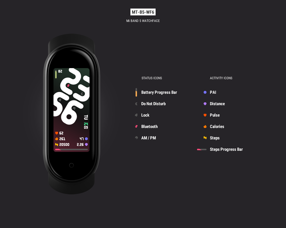 Here is my new watch face for Mi Band 5 with Inclined Time digits.