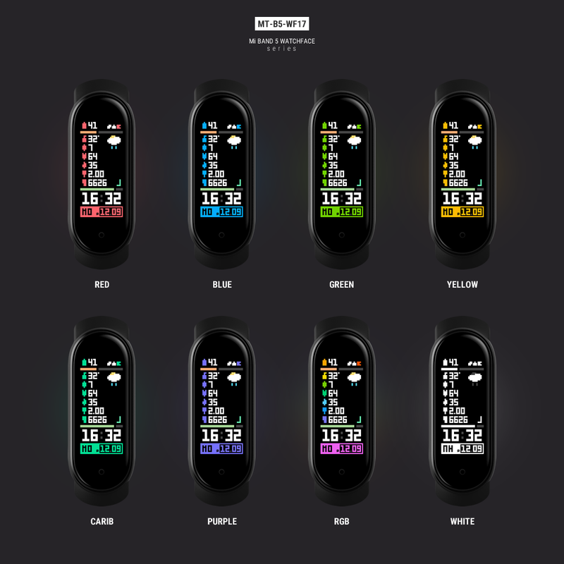 Hi, I've just bought a Xiaomi Band 9 Active (i.e. the rectangular one). This can show multiple info on screen, including hour, minutes, seconds, date, weekday, steps, calories, heartrate, uptime, meteo, temp. Unfortunately there is no watch...