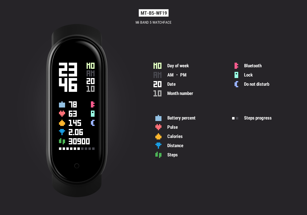 Hi, I've just bought a Xiaomi Band 9 Active (i.e. the rectangular one). This can show multiple info on screen, including hour, minutes, seconds, date, weekday, steps, calories, heartrate, uptime, meteo, temp. Unfortunately there is no watch...