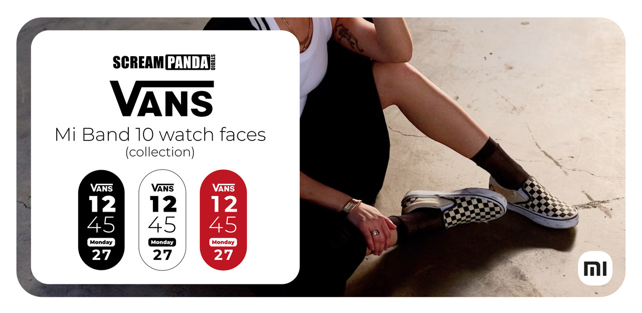 3 Vans sport watch faces for your Mi Band 10.