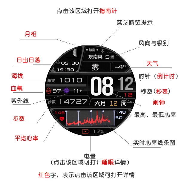V5:修复紫外线信息BUG;将表盘顶部红三角改成“指南”字样;优化其他某些信息的字体。